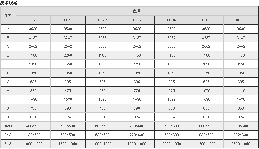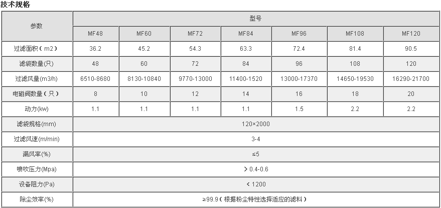 MF系列脈沖布袋除塵器技術規(guī)格