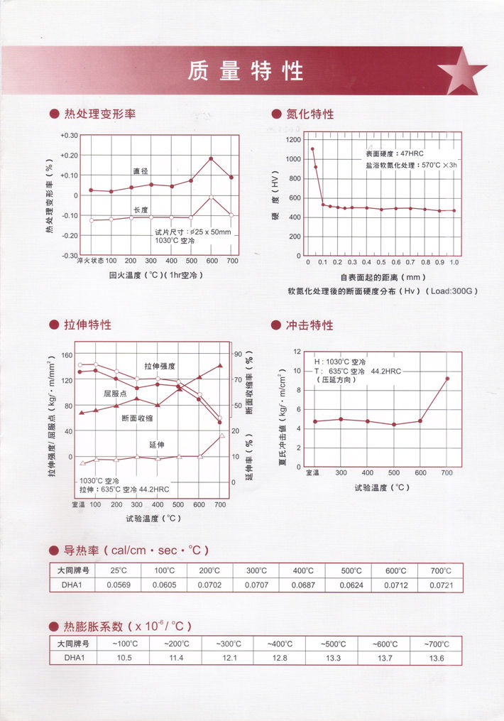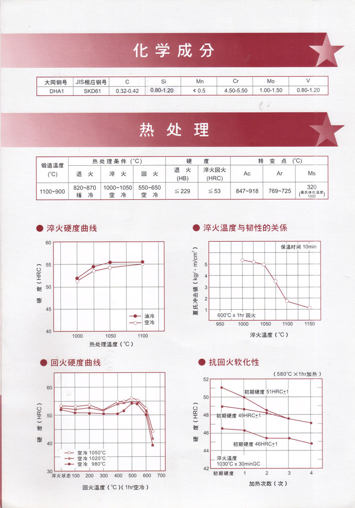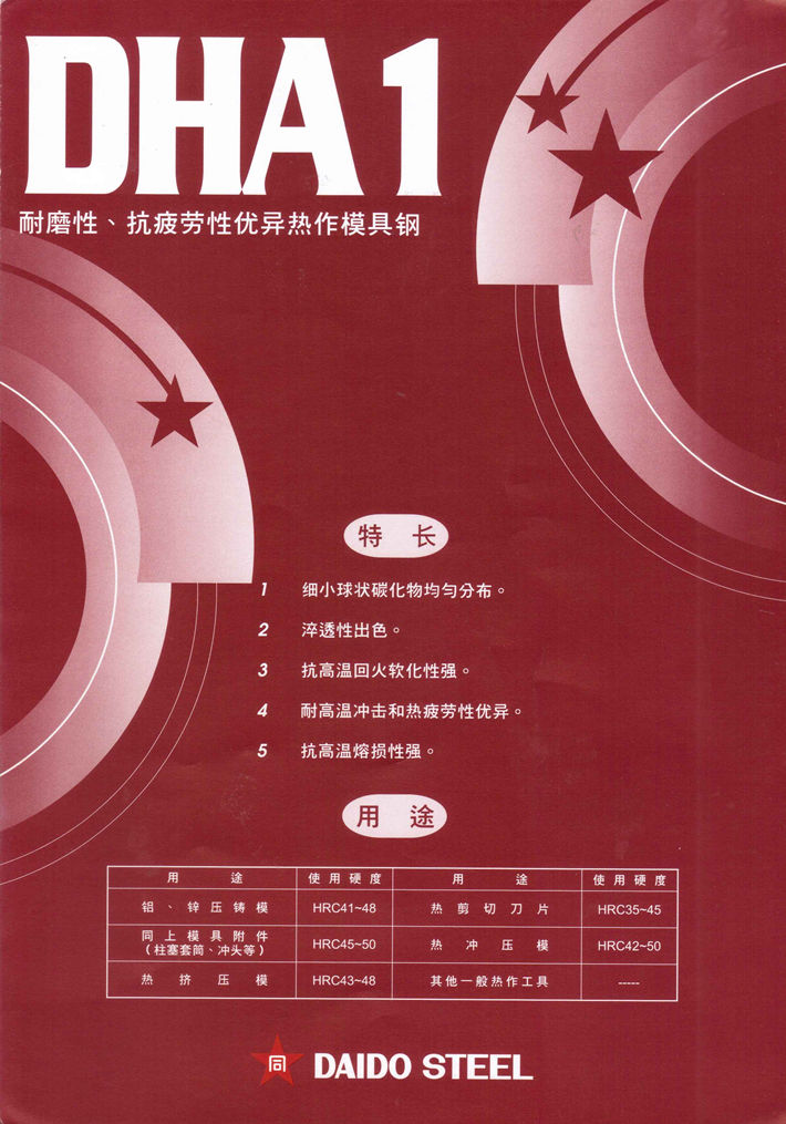 簡要描述:日本大同DHA1(SKD61)熱作模具鋼:通用熱作模具鋼...