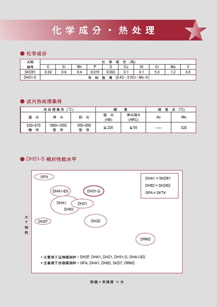 簡要描述:日本大同DH31-S熱作模具鋼:高韌性*高溫強度改良鋼...